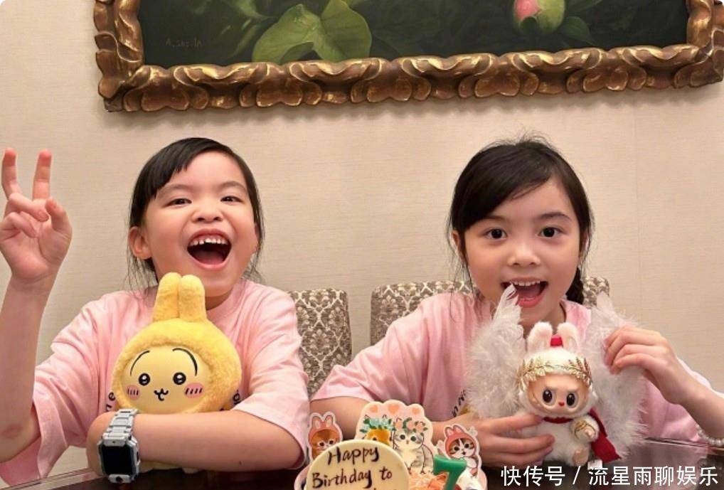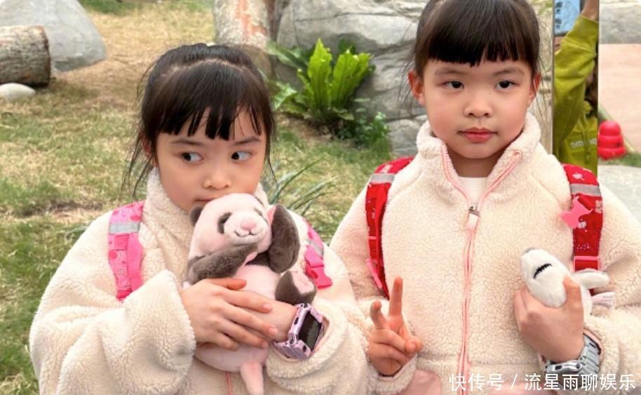 最引人注目的,非那对双胞胎小公主莫属。姐姐和妹妹穿着一样款式但不同颜色的小旗袍,梳着俏皮的发型,笑容满满,真是让人惊喜呀。令人意外的是,从眉眼到鼻梁,再到下巴的轮廓,两个孩子都更像爸爸那一边,尤其是姐姐,神态和动作都跟郭可颂简直一模一样。